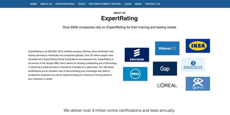 Expertrating an iso 90012000 certified company offering online certification and training services to individuals and companies in over 60 countries. Candidates who pass the six sigma certification receive a certificate of accomplishment. 99, six expertrating. Expertrating solutions. Check out what 1,311 people have written so far, and share your own experience.Ready to explore our catalog.. Expertrating is a pioneer in online skill assessment since 2001 and one of the only companies to be certified under iso 90012015 standards for test.. We believe in delivering cutting edge skills training and competency evaluation services.. Com internationalbusiness..99 for people who would like to become certified fitness trainers. Com › erating › about_usabout us expertrating solutions ed2go. Expertrating is an iso 90012015 certified company, which reflects that our courses and tests conform to the highest international quality standards.